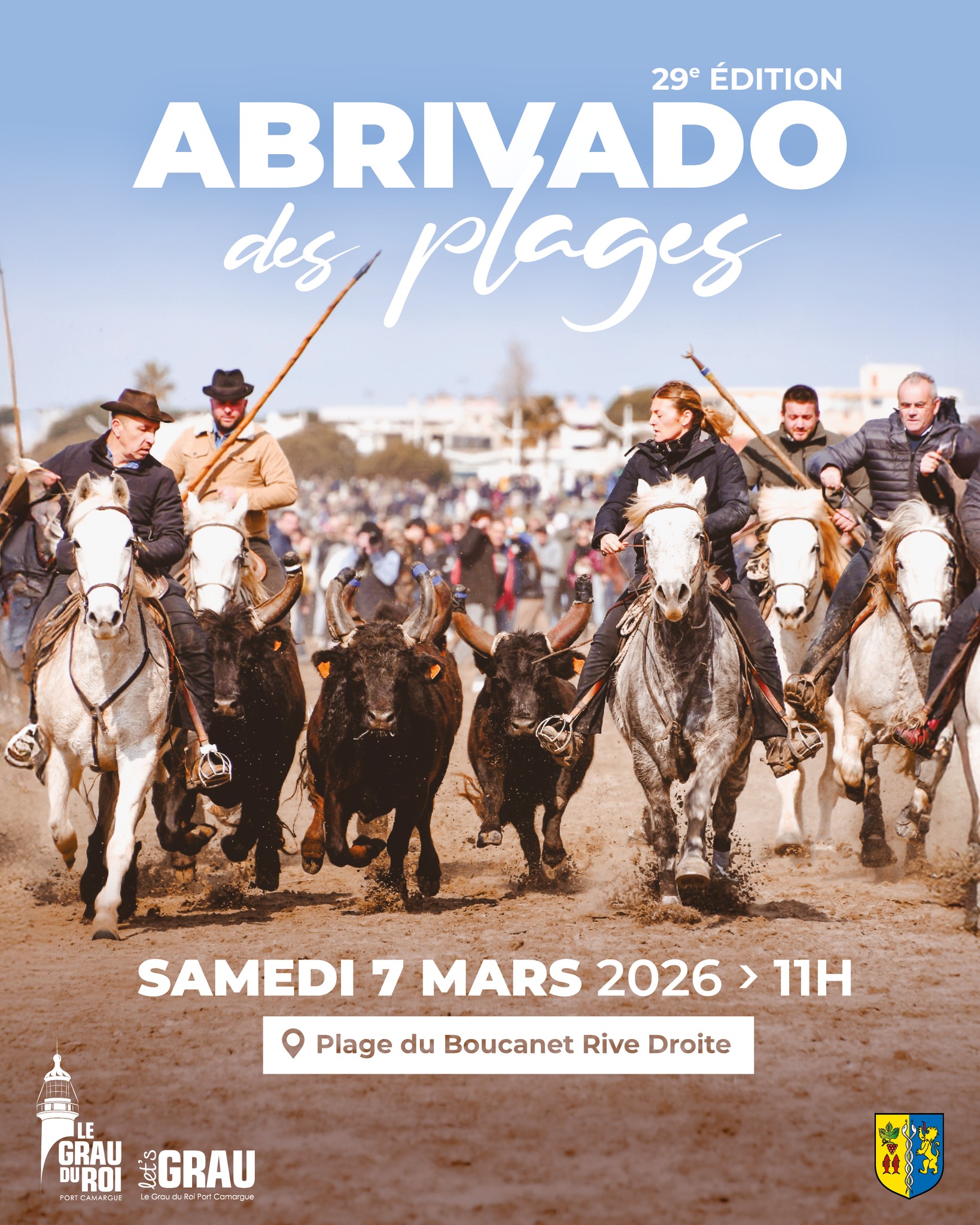 La Camargue vous invite à vivre un moment unique : la 29ᵉ édition de l’Abrivado des Plages, qui se tiendra le samedi 7 mars 2026 à 11h, sur la plage du Boucanet, rive droite au Grau-du-Roi. Symbole des traditions taurines locales, l’Abrivado est bien plus qu’un simple spectacle : c’est une véritable célébration du patrimoine camarguais. Chaque année, les gardians accompagnent les taureaux dans une démonstration de maîtrise et de courage, mêlant art équestre et passion régionale.