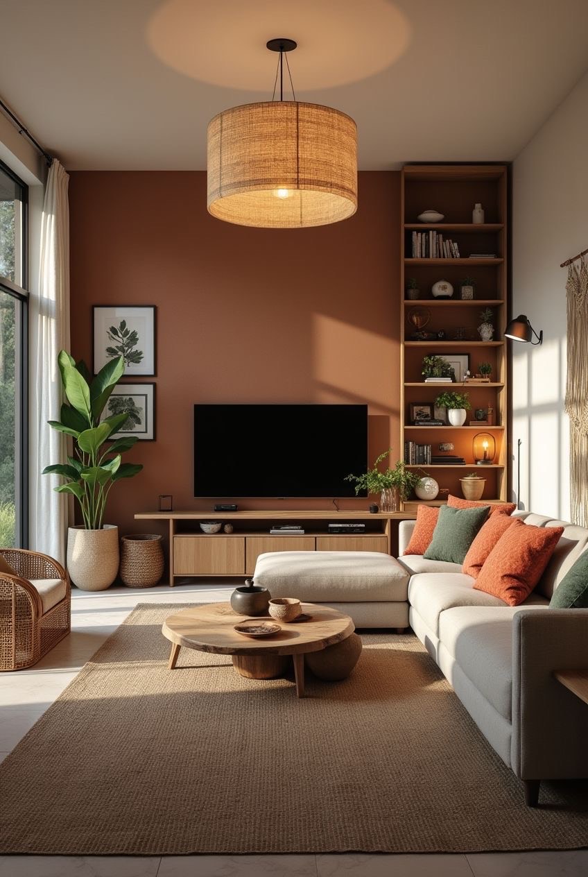 On privilégie des teintes denses et chaleureuses comme le terracotta, le brun chocolat et le vert sauge pour créer une atmosphère cosy et accueillante.
