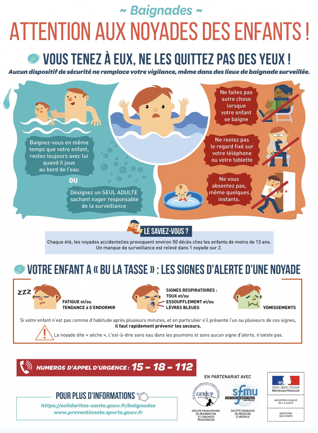 Prévention aux noyades Publié par Montargis le 25/06/2025 En cette forte chaleur, pensez à adopter les bons gestes ! Pour en savoir plus : http://www.sports.gouv.fr/preventiondesnoyades/ En cas d'urgences, appelez le 15-18-112 Partager sur les réseaux