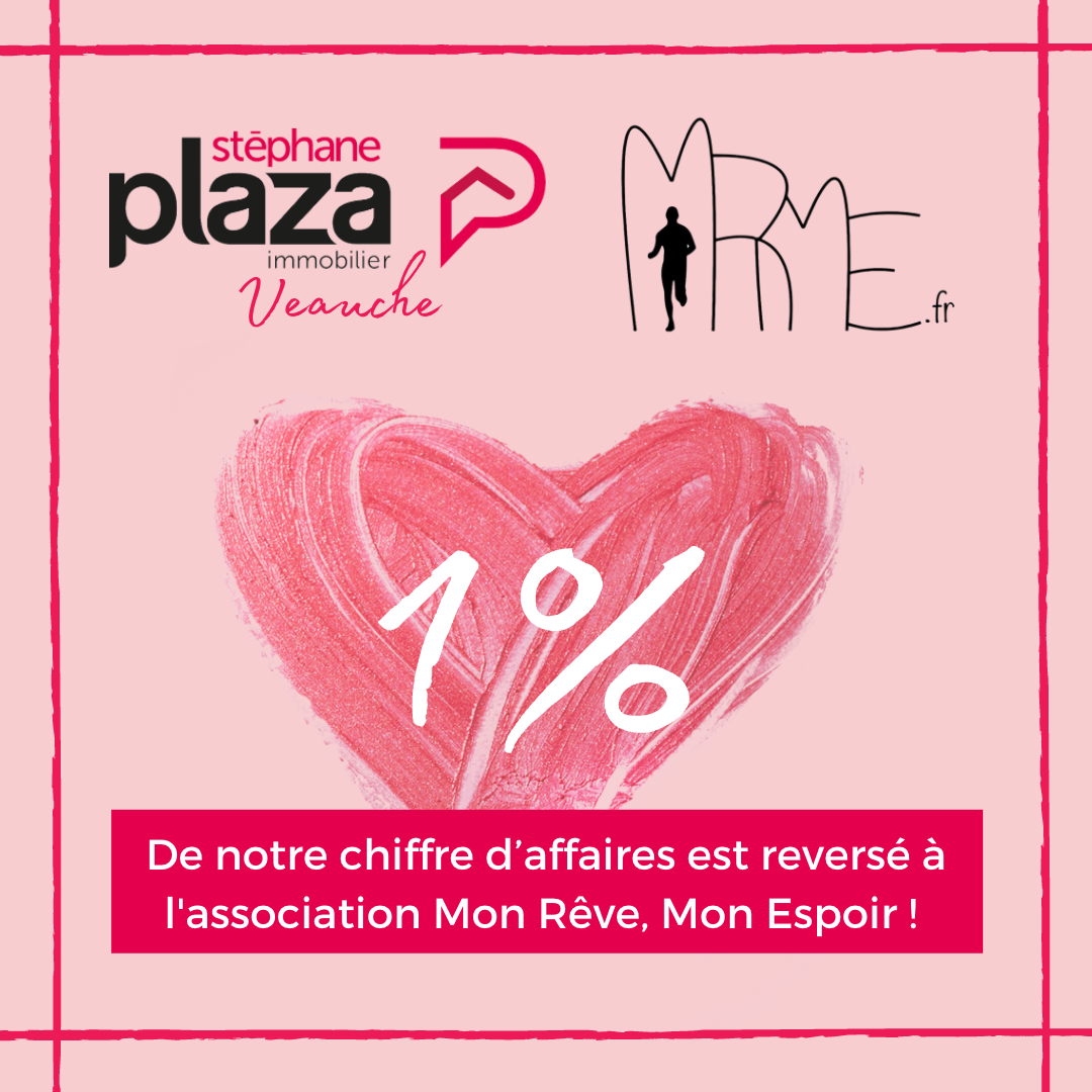 Chez Stéphane Plaza Immobilier Veauche, nous avons décidé de reverser 1% du chiffre d'affaires de nos ventes au profit de l'association Mon Rêve, Mon Espoir ✨